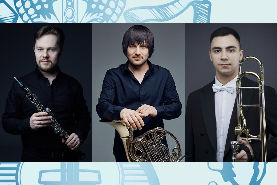 Алексей Лобиков (тромбон), Анна Савкина (скрипка), Федор Освер (гобой)