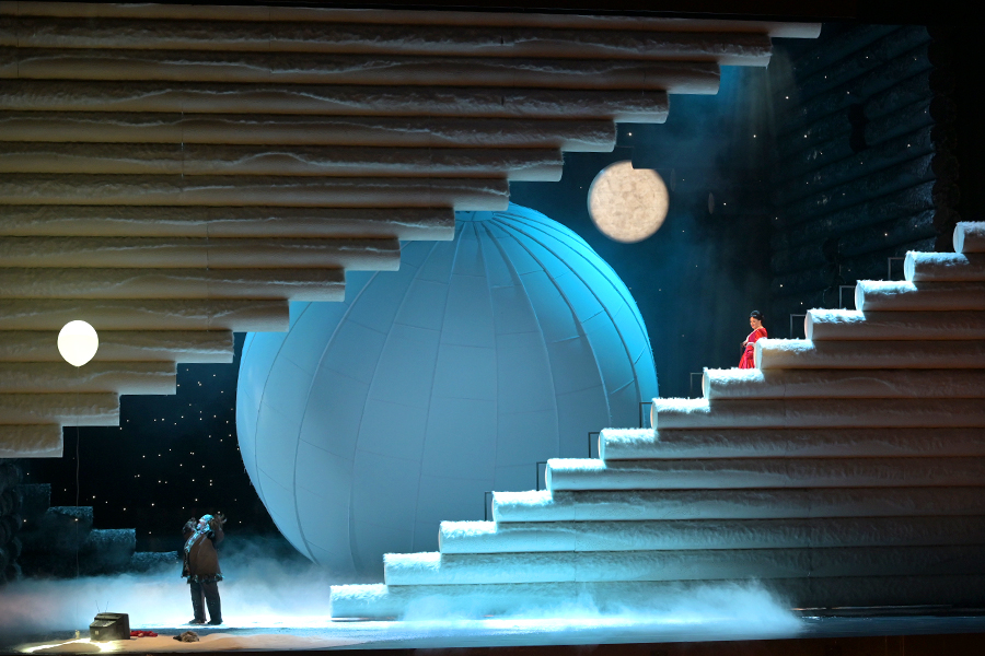 And yet from the very start, in the utopian idyll of the land of the Berendeyans, Rimsky-Korsakov caught something disturbing, and it was not for nothing that following the first reading of the play this kingdom seemed “strange” to the composer. For the sake of preserving the existing world order, a cleansing sacrifice is made, and if archaic consciousness is ready, without hesitation, to recognise the need for this sacrifice, then we, people of a new age, are different: “No solemn ritual and no conviction that everything is done as it should be and goes on as usual will assure us of the justice of retribution,” wrote Boris Asafiev. “We feel sorry for the Snow Maiden,” the scholar sums up, describing the scene where the heroine melts. Anna Matison, who staged The Snow Maiden in 2020 at this opera’s home stage, took the following step of debunking the dubious goodness of the society presented in Rimsky-Korsakov’s opus. Her Snow Maiden is not a pantheistic myth about the violation and restoration of cosmic balance, but rather the story of a lonely teenage girl who finds herself in an odious adult world inhabited by greedy liars. The audience pities the female protagonist from the prologue to the finale. The Berendeyans, despite all the colourful splendour of their festive attire (by costume designer Irina Cherednikova), are not at all a peaceful rustic people, they are not cute Old Slavic “hobbits”, they are an aggressive crowd of consumers, ultimately cursed to being destroyed by their own god. The immense sizzling sphere of Yarilo, so powerfully contrasting with the weightless white ball that is the Snow Maiden (by set designer Alexander Orlov), in this context may be regarded as a menacing warning. Khristina Batyushina
