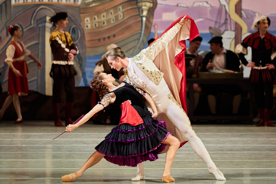 This festive, hot-tempered and virtuoso ballet was staged in 1900 (and transferred from the Bolshoi Theatre in Moscow to the Mariinsky Theatre in 1902) by Alexander Gorsky after the eponymous ballet of Marius Petipa, which had graced the St Petersburg stage from 1871. The young and passionate choreographer Gorsky was heavily influenced by Stanislavski (who had just opened the Moscow Art Theatre) at the beginning of the 20th century. To make the ballet more ‘lifelike and truthful’ he turned the symmetrical corps de ballets, so common in his renowned colleague Petipa’s works, into a playful, lively, and cheerful crowd. The first spectators recalled, ‘the lively and passionate crowd in the square makes you believe up to a point of delusion in the sun, which makes you fall in love so keenly, tease each other, chase after the running beauty, who hides behind her fan…’