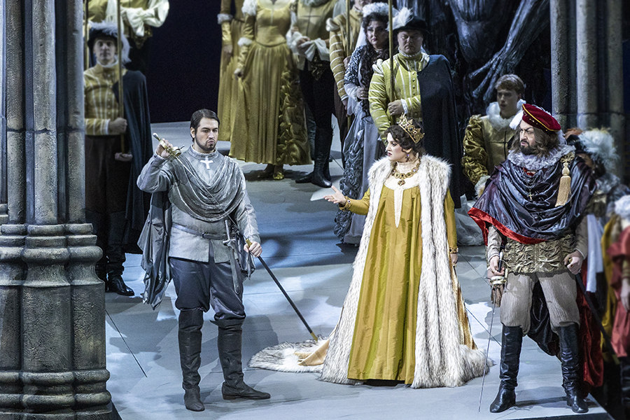 Август 1572 года. Весь Париж празднует королевскую свадьбу. Бракосочетание католички Маргариты Валуа и гугенота Генриха Наваррского должно положить конец религиозным войнам между двумя христианскими конфессиями и принести во Францию долгожданный мир. Граф де Невер, католик, принимает гостей у себя в замке. Он предупреждает их, что ждет еще одного гостя – юного дворянина Рауля де Нанжи, с которым недавно познакомился в Париже. Рауль – гугенот, но в связи с королевским указом, объявляющим мир между католиками и гугенотами, Невер надеется, что его приятели-католики всё же окажут ему дружеский прием.