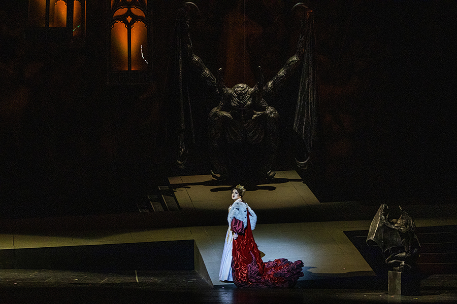 Замок графа де Невера. Валентина в молитве пытается найти забвение и отказаться от любви к Раулю. Неожиданно появляется сам Рауль. Он пришел вымолить ее прощение, перед тем как уехать.
