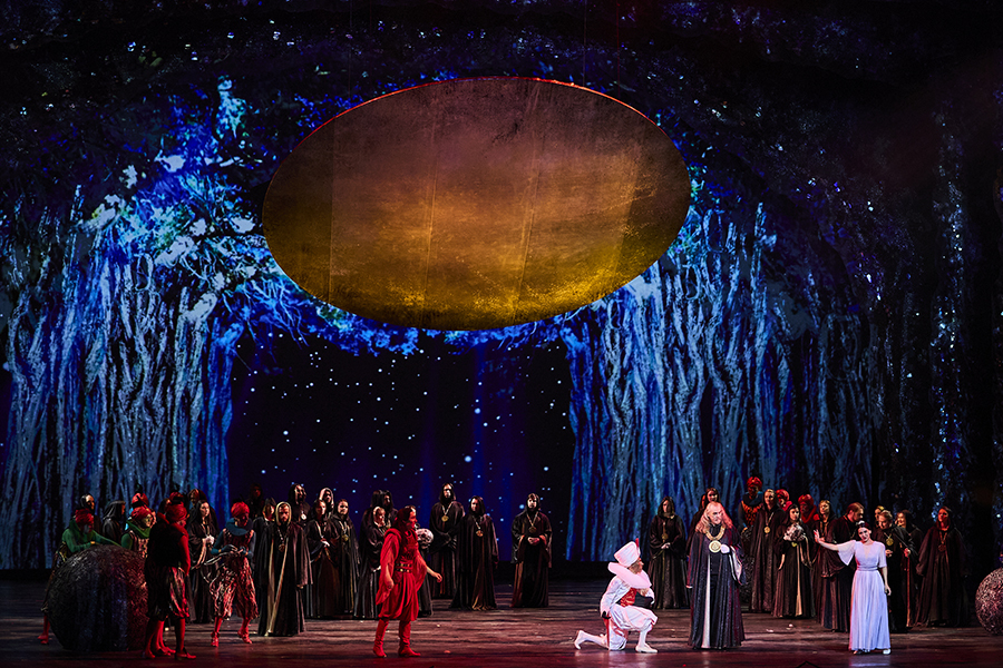 Тогда Царица ночи вместе с Моностатосом, которому она пообещала свою дочь в жены, и тремя дамами готовится напасть на храм Зарастро и разрушить его. Но Зарастро раскрывает заговор, и Царица ночи со свитой навсегда исчезает во тьме. Воцаряются свет, мудрость и любовь.