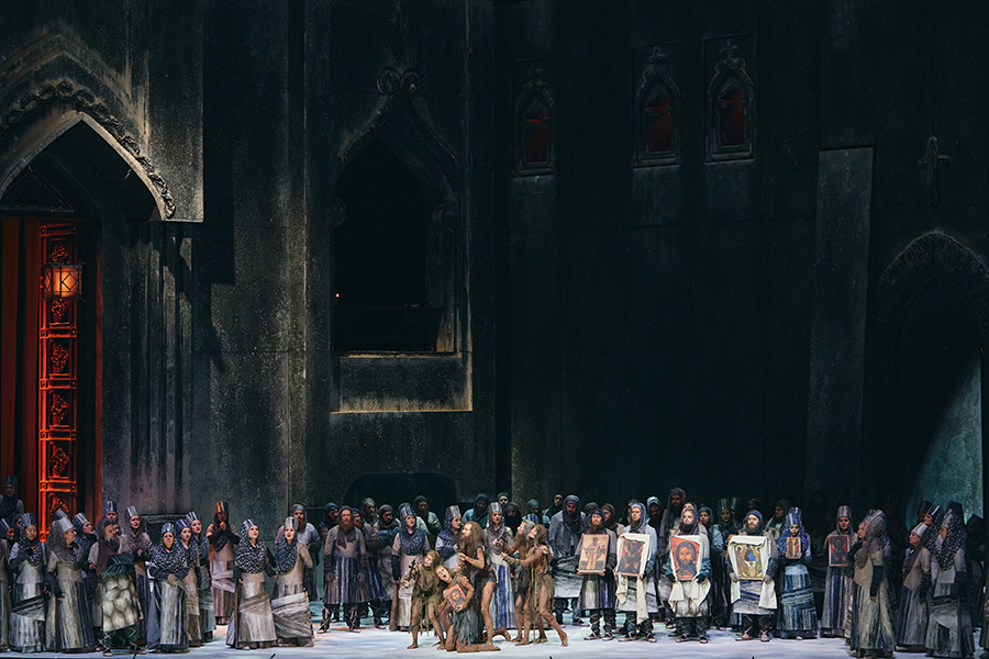 Поскольку время и место действия оперы четко определены, я не хотел переносить их куда бы то ни было. Мы работаем с первой версией, а это значит, без польского акта и сцены «Под Кромами». И все же спектакль будет многолюдным: помимо солистов, в нем участвуют огромный хор, пятьдесят детей и столько же артистов миманса… Чтобы дать зрителям ощущение причастности к происходящим событиям, мы несколько раз перемещаемся в партер. При этом в центре внимания всегда остается фигура царя. Моя идея заключается в том, чтобы показать историю его глазами, в том числе используя современные технологии, например видеопроекции. Я хотел раскрыть все стороны глубокой, измученной души Бориса Годунова и дать зрителям ключи к ее пониманию. Готовых решений не предлагаю: кто здесь прав, кто виноват – пусть судят зрители. И пусть их выводы не будут поспешными, ведь личность Бориса очень сложна, в ней каждый раз открываются новые грани. Это исключительный персонаж! В операх ведь часто погибают – кто от ножа, кто от яда, – но крайне редко умирают от угрызений совести…