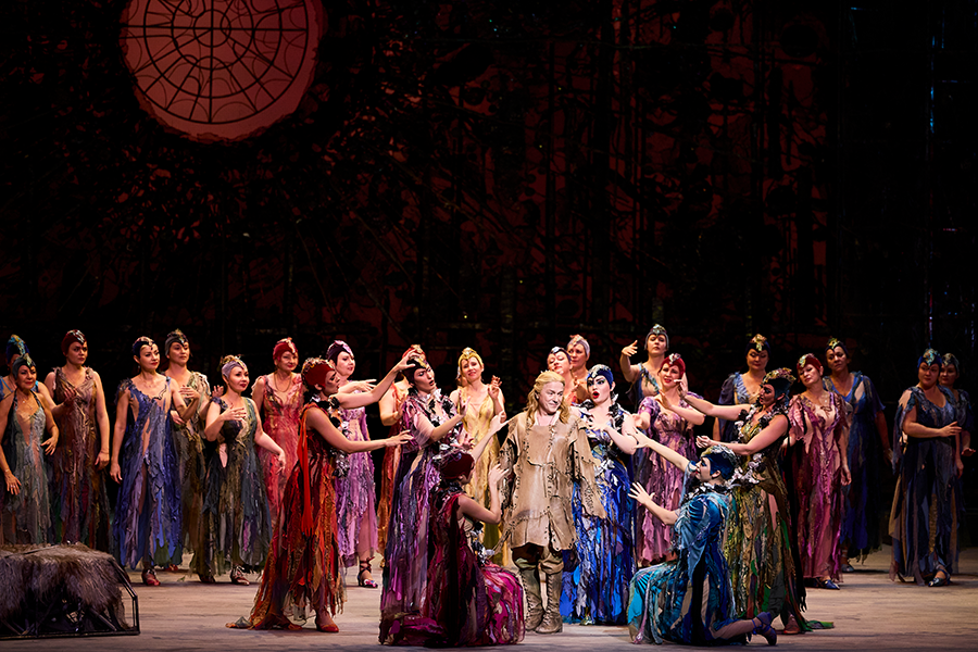 Здесь Парсифаля встречают прелестные девушки – создания Клингзора, но их поддразнивания и заигрывания не смущают его. Появляется преображенная чарами Клингзора ослепительно прекрасная Кундри. Отослав девушек, Кундри рассказывает Парсифалю о смерти его матери. Затем, утешая терзаемого раскаянием юношу, она предлагает ему «последний знак материнского благословения – первый поцелуй любви». И этот поцелуй производит в нем страшную перемену: он вспоминает о трагической участи Амфортаса, и ему кажется, что он чувствует боль, терзающую несчастного.